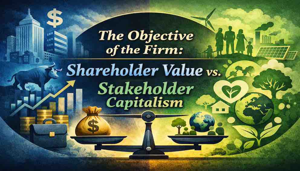 What is a firm actually trying to maximise, and why does this question sit at the heart of every financial decision it makes? This tutorial moves beyond the slogans of "shareholder value" and "stakeholder capitalism" to establish the core financial objective: maximising the long-term, risk-adjusted value of the firm. We reframe stakeholders, ESG, and governance not as alternatives to this goal, but as the very channels through which value is created or destroyed. This lecture provides the decision-making compass for the entire series.