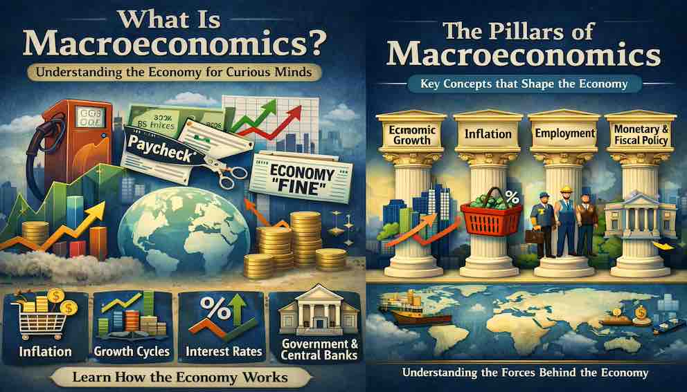 Why do gas prices spike, paychecks feel tighter, and stock markets swing wildly—even when headlines insist the economy is "fine"? These aren’t random events. They’re the result of powerful, interconnected forces: inflation, economic growth cycles, interest rates, and government and central bank policies that touch every corner of your life. Our jargon-free macroeconomics tutorial series guides you through these forces step by step. You’ll discover: what macroeconomics really is, the key pillars that shape economies, how policies influence these pillars, how to interpret economic data to see the story behind the headlines. By the end of this series, you won’t just read the news—you’ll understand the patterns and connections that drive the economy. Ready to see the bigger picture others overlook? Start your journey today.