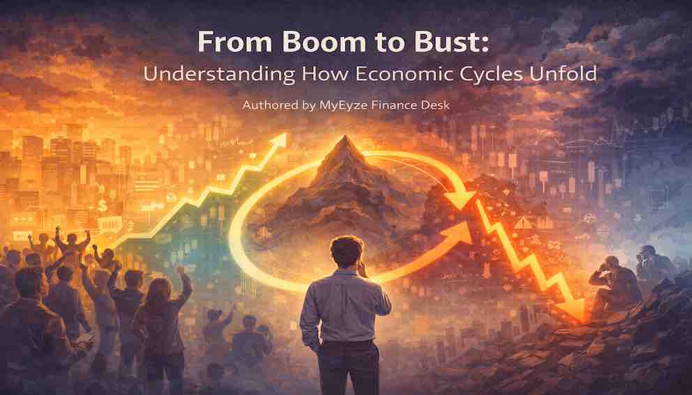 Economic cycles show how the economy naturally moves through periods of growth, peak, contraction, and recovery, shaped by spending, investment, credit, and human behavior. Expansions are driven by optimism and borrowing, while downturns are amplified by fear, debt, and loss aversion. Understanding the phases of the cycle, along with key indicators like GDP, employment, credit, and consumer sentiment, helps identify risks and opportunities before they fully unfold. Behavioral factors such as herding, overconfidence, and Minsky-style leverage cycles often push markets beyond fundamentals, while policy tools like interest rates and fiscal measures aim to stabilize growth but have limits. Historical examples, from 1970s stagflation to recent inflationary cycles, show recurring patterns of excess, correction, and recovery. By combining data, behavioral insights, and policy understanding, readers can anticipate turning points, navigate volatility, and make informed decisions.