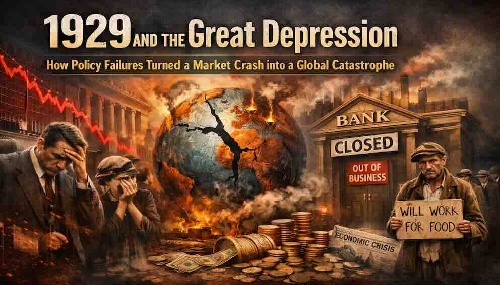 The stock market crash of October 1929 remains the most famous financial collapse in modern history. Yet the crash itself did not create the Great Depression. That distinction belongs to what followed: a cascade of policy failures that transformed a sharp but survivable market correction into a decade of economic devastation. By examining the interplay of speculation, banking panics, monetary rigidity, debt deflation, and protectionist trade policies, we uncover the deeper lesson for investors—that markets can recover from almost anything except sustained policy error.