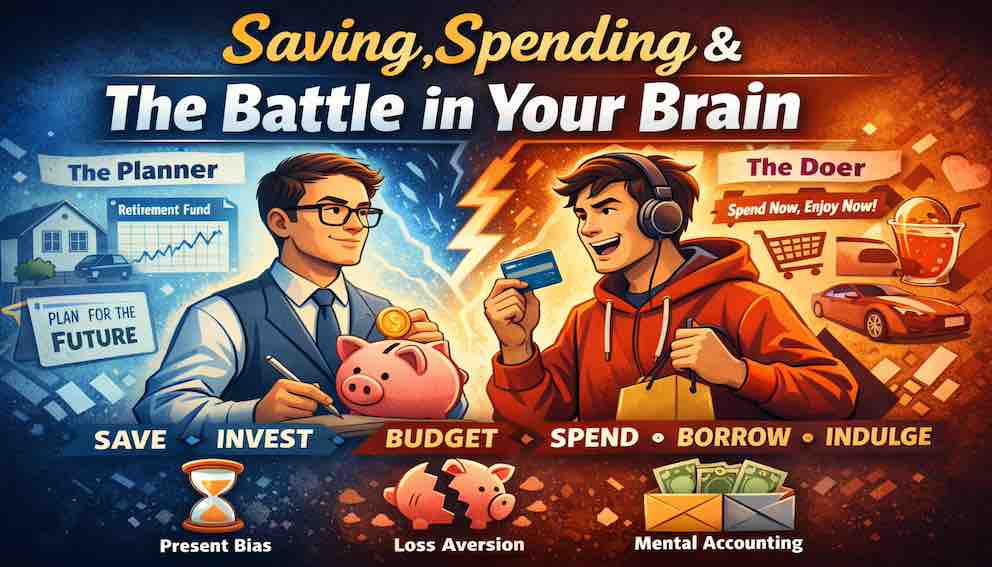 Ever plan to save or invest, but end up spending on small treats or gadgets instead? That’s your brain at work. Your long-term “Planner” wants financial security, but your short-term “Doer” craves instant rewards. Behavioral biases like present bias, loss aversion, and mental accounting quietly steer your choices—even when you know better. The good news: You can design your financial environment to work for you. Automate savings, pre-commit future income, use cooling-off rules for big purchases, and track progress visually. With the right systems, your Planner wins without relying on willpower alone. Try this: Look at your last three spending decisions. Which impulse might have influenced them? How could a simple rule or habit have helped?