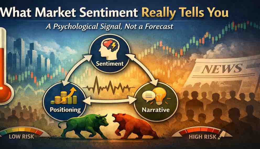 Market sentiment is often mistaken for a prediction tool, but it is better understood as a diagnostic one. It does not tell you where prices will go next; it tells you how aligned, confident, and fragile the market system has become. When optimism is widespread, narratives are unquestioned, and volatility is low, markets can appear stable while quietly losing their ability to absorb shocks. Sentiment becomes most informative not when it changes direction, but when disagreement disappears and confidence feels effortless. Used correctly, sentiment helps investors assess vulnerability and risk asymmetry—not time entries or exits.