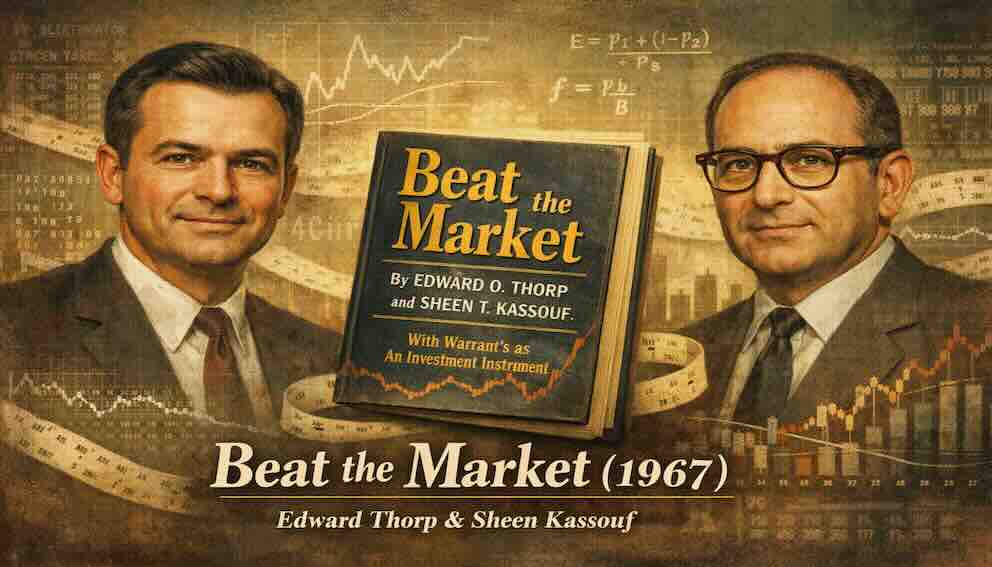 Edward Thorp and Sheen Kassouf published Beat the Market in 1967, at a time when Wall Street still ran on intuition and hunches. They had discovered that warrants—obscure securities ignored by most investors—were systematically mispriced. They developed a formula to identify these mispricings and a hedging strategy to exploit them with minimal risk.