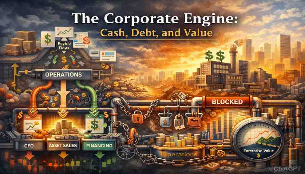 This series is not a technical manual and it is not a bankruptcy law course; it assumes you already understand financial management and corporate finance, and instead focuses on something more practical and more dynamic: how companies move from stability to stress, from stress to distress, and sometimes back again. We will examine how cash actually flows through a business, how leverage amplifies small problems, how liquidity tightens before headlines appear, how refinancing risk builds quietly, how valuation changes when survival becomes uncertain, and why ownership shifts when enterprise value falls. Formulas will appear where they help, but they will not lead; our aim is to build intuition about movement, pressure, and timing so that when we later discuss covenants, restructuring, or bankruptcy, you understand not just the mechanics but the forces underneath them. Everything begins with the engine.