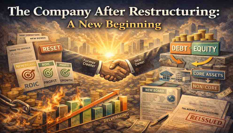 Emerging from a restructuring process marks a critical new beginning for any company. This tutorial explores how ownership shifts from distressed equity holders to former creditors, how governance and management incentives realign with recovery goals, and why operational discipline, cash management, and strategic refocus are essential for long-term success. Through the story of Precio Components and real-world examples, readers will understand why post-restructured companies often emerge financially healthier, operationally leaner, and strategically better positioned to pursue sustainable growth.