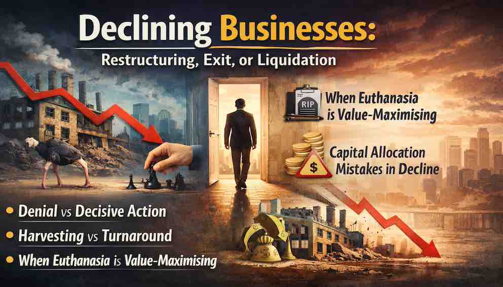 Every corporate lifecycle, no matter how glorious, has a final chapter. Our series has charted the journey: from the fragile optionality of the startup, through the scaling calculus of growth, to the mature stewardship of returning capital. Now, we arrive at the phase that tests management's character most severely: structural decline.