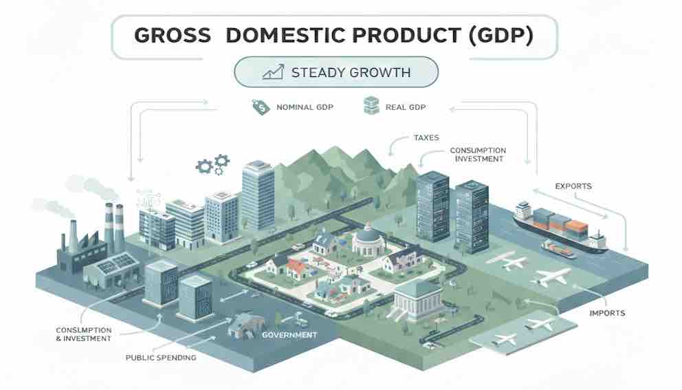 GDP, or Gross Domestic Product, tells us how much a country produces in goods and services over a period. Like a scoreboard, it measures output—but not happiness, fairness, or environmental health. Understanding GDP, how it’s measured, and its strengths and limits is the first step toward making sense of the economy.