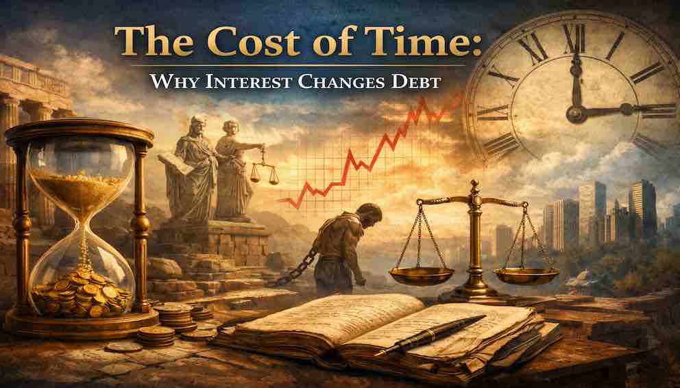 Debt allows people to use resources before they have fully earned them, bridging the gap between present need and future production. In every debt relationship, one party gives up control of resources now, while another promises to return value later, relying on shared uncertainty about the future and agreed rules to make that promise credible. Interest changes this arrangement by assigning a price to waiting, so that time itself increases what is owed even when nothing else happens. Across history, societies have depended on lending but have repeatedly resisted the idea that time alone should generate income. This unease reflects a clear understanding that once time is priced, debt shifts from a tool of coordination into a mechanism that redistributes power and shapes behavior over the long run.